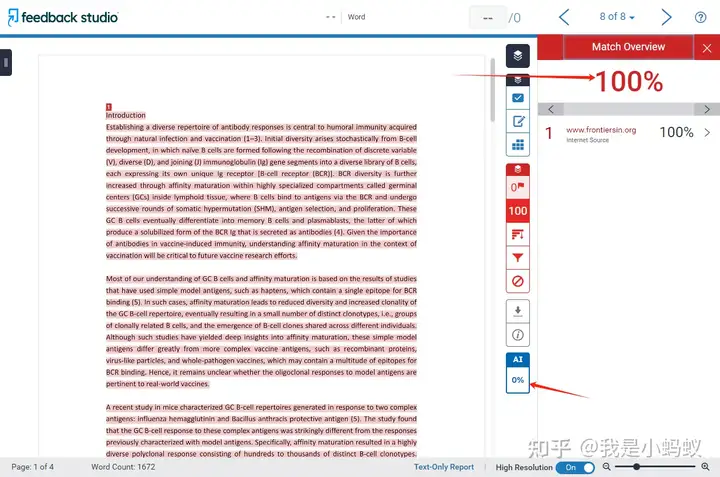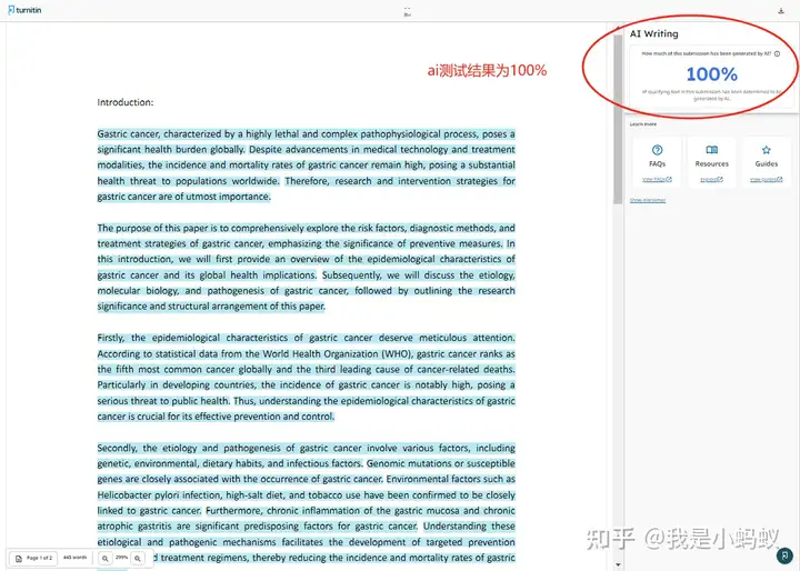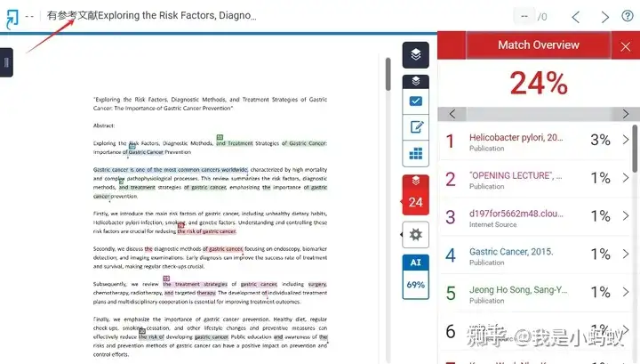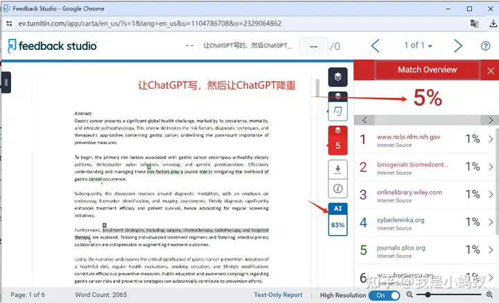 测试用的文章是在另一篇帖子出现过,是用ChatGPT写出来的:Exploring the Risk Factors, Diagnostic Methods, and Treatment Strategies of Gastric Cancer The Importance of Gastric Cancer Prevention(原帖:SCI论文查重时需要放参考文献吗)