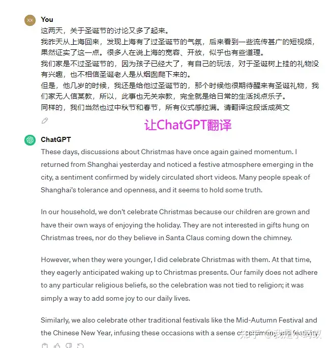 下面是从知乎上随便找的中文让ChatGPT翻译的