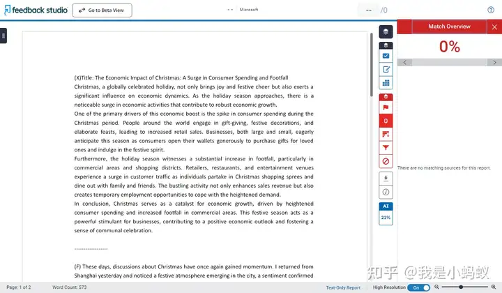 当然可能会好奇那这样写出来的文章,turnitin的重复率是多少,答案是:0,如下图。哈意外吧。