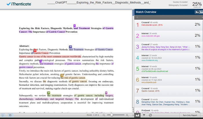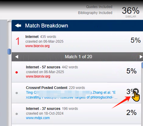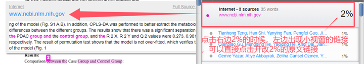 第二步:打开自己报告的iThenticate在线链接后,三种打开原文出处的方式