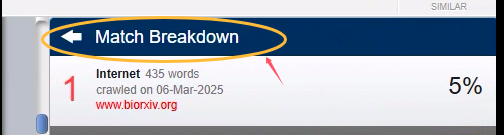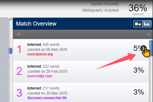 在网页右侧,你会看到一个Match Overview相似来源列表。