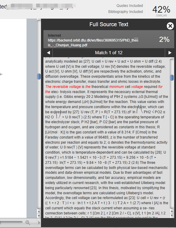 ✅ 刚才说在小视窗可以看到重复句子的部分原文内容,而点击full source view则可以看到原文出处的整片内容(点击full source view后会在界面的右边出现)