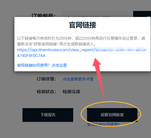 ✅ 获取官网链接后打开iThenticate在线报告链接