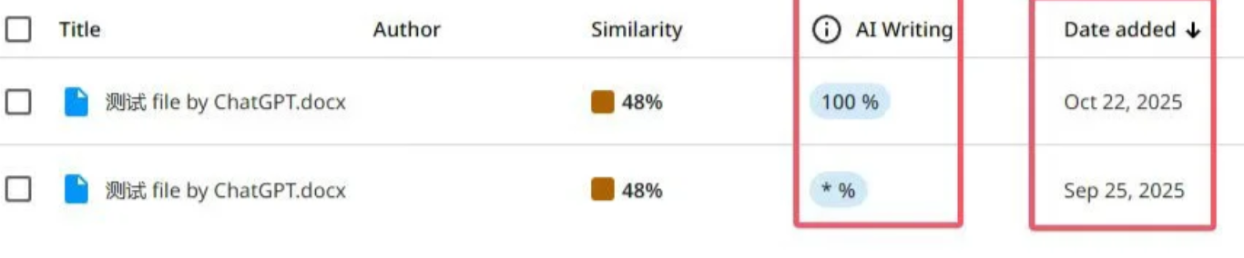 在公告里有句话是“This release will not retroactively update previously-generated Al writing reports【本次更新不会对之前生成的 AI 写作报告进行追溯更新】”,也就是10月14号之前查的AI报告,已经不能做数。如果需要系统更新后的AI结果需要再次查一遍。